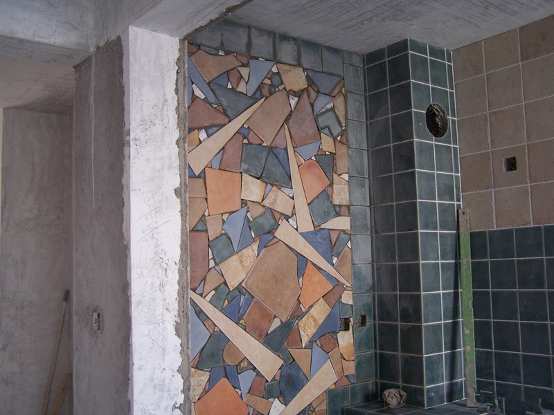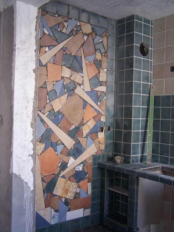 齐家网> 齐家装修论坛> 装修> 废物利用,把下脚料碎拼厨房留下的墙。