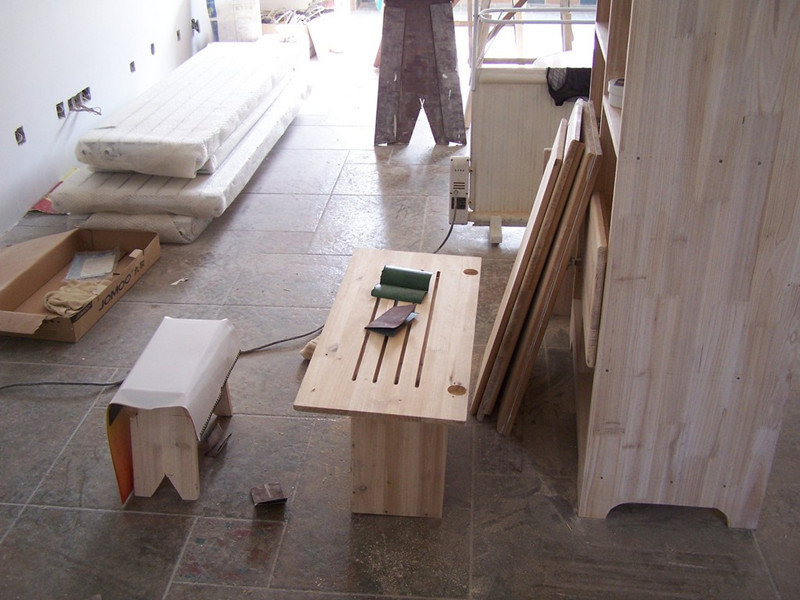 本来打算家具打磨完了再开始刷漆,可是打磨家具太累人了,一起刷...
