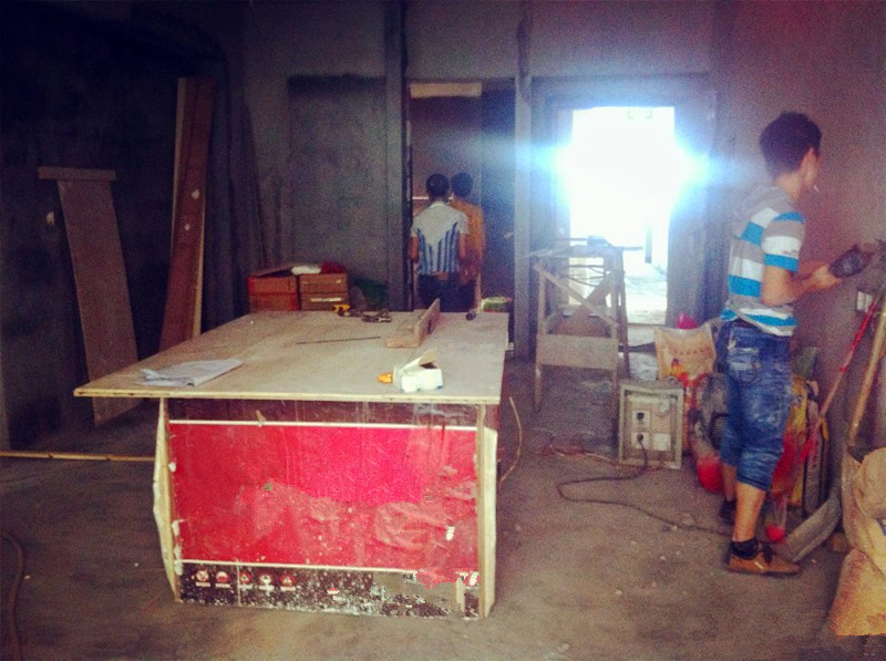 厨房卫生间阳台贴砖,几个小地方的吊顶,还有榻榻米房间的木工,我到现场确认图纸后,师傅们马上开工了。