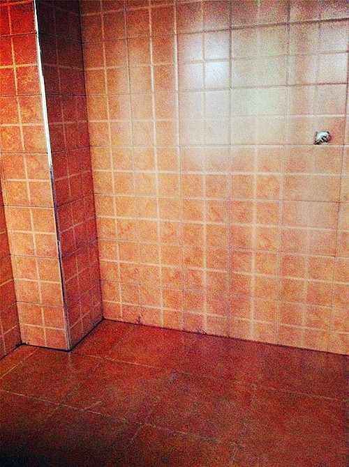 贴砖师傅手脚麻利,2天就把瓷砖贴得差不多了。