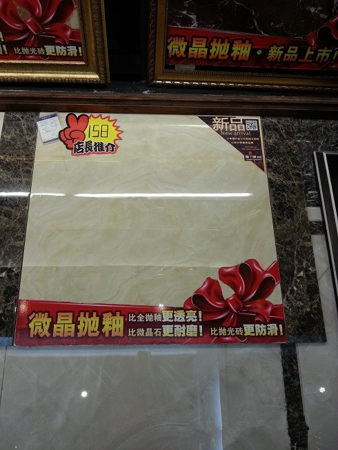 现在流行地砖上墙,咱也时髦一把,两个卫生间就选了这款。地面切成400*400,墙面切成400*800。315特价159一块,即使这样,算上切割费,价格还是比普通瓷片高出一大块啊。