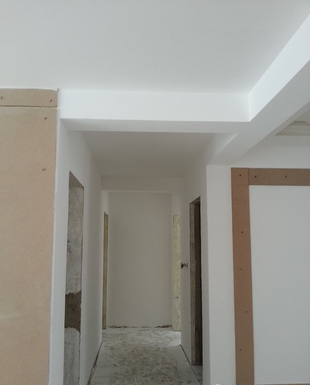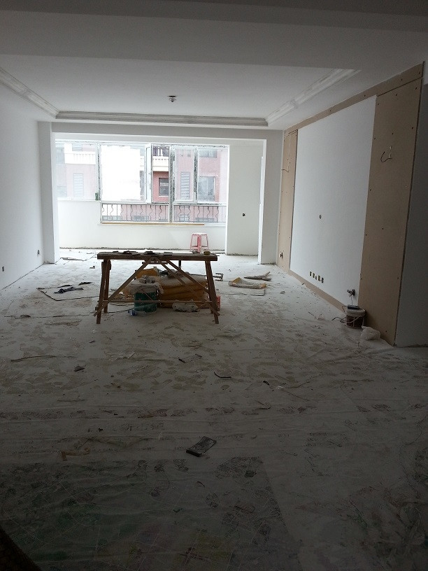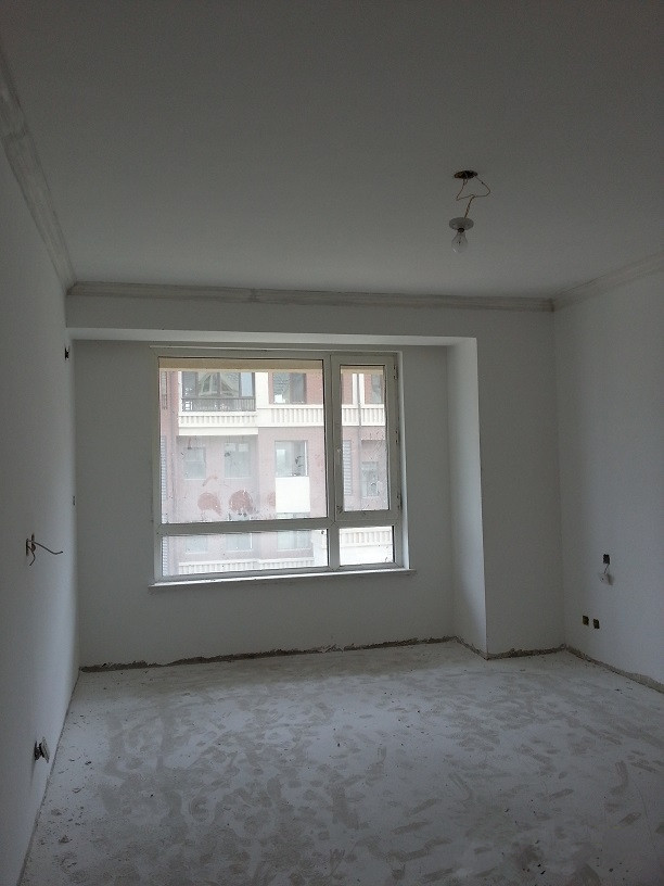 因为我家要做硅藻泥及壁纸,所以油工活主要就是刮大白,现在工地就是这个状态,墙壁变白了,整个屋子也显得大多了。刮大白效果。