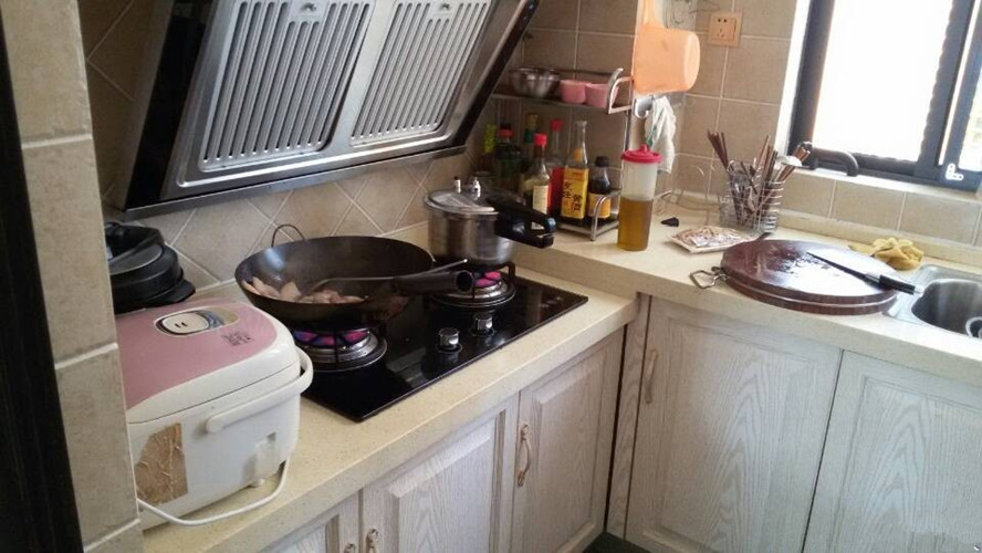 我们家的橱柜安装,直接上图:铝合金框架---铺好台面---装上门---完装完成。
