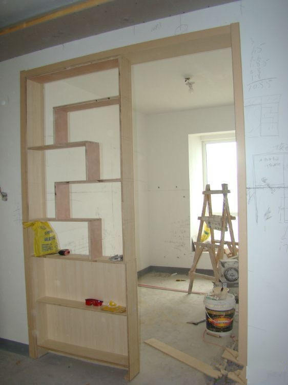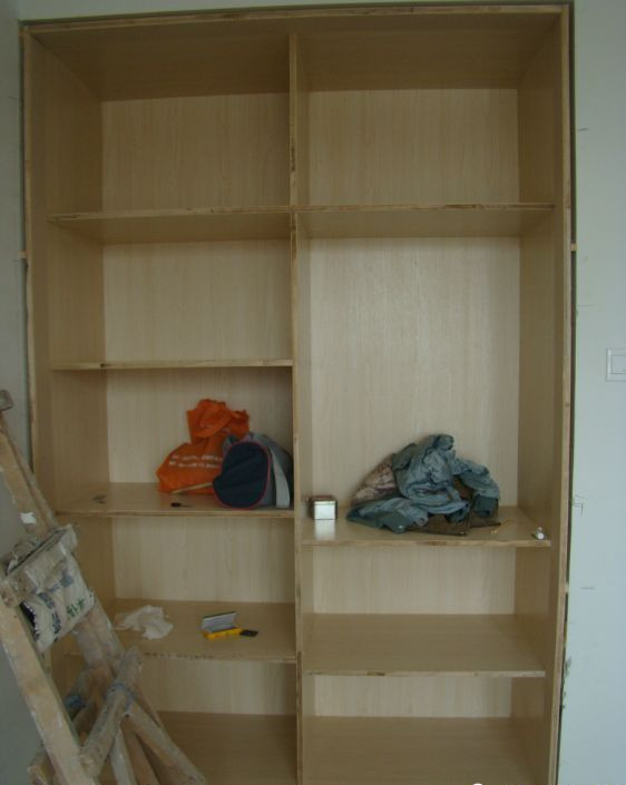 齐家网> 齐家装修论坛> 装修> 主卧的衣橱和未上漆前得博古架。