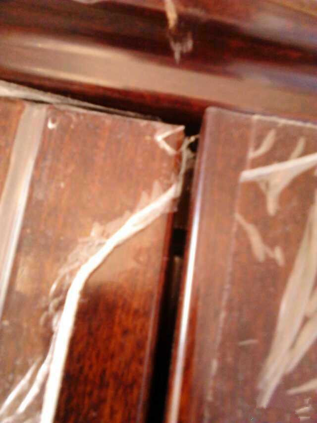 验房了,发现入户花园靠右边一堵墙底部有点凸出;门有刮痕门框的上方内侧掉了很多漆子母门两页不平整。看图。