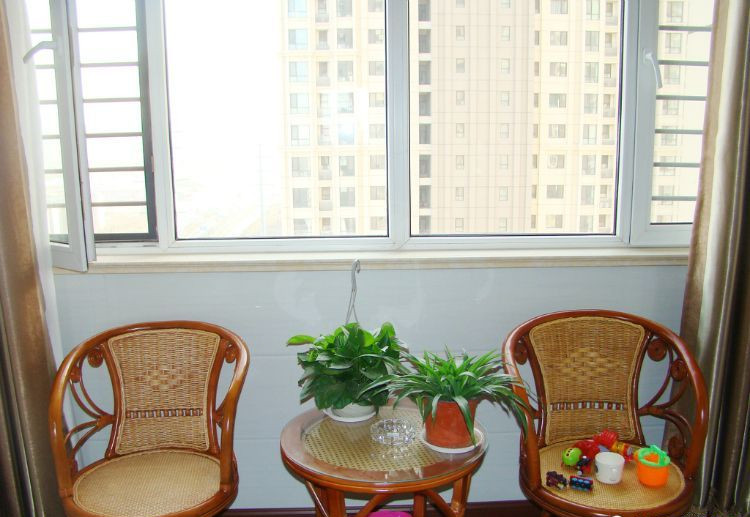 沙发的榻的部分都有靠背,把阳台和客厅自然的给分割开了,后面还有1.5米的宽度,放上藤椅还留出给儿子玩的地方呢。