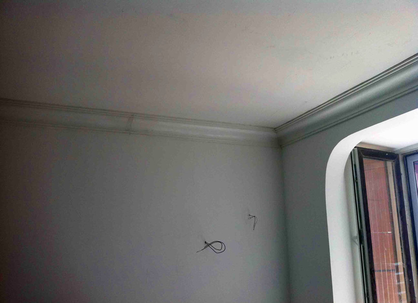 油漆阶段:石膏线原本打算用两条上下贴在一起,整出房顶向下大宽白边的效果,然后配上深色墙面漆,啧啧!可惜窗户做了拱形处理,立面宽度不允许,而且也没我想要的石膏线造型,时间紧张,也不做过多折腾,就贴了一条。油漆没什么可说的,完工以后用手摸摸看吧~好了亲们,准备开始了。关门,放图!石膏线细节。