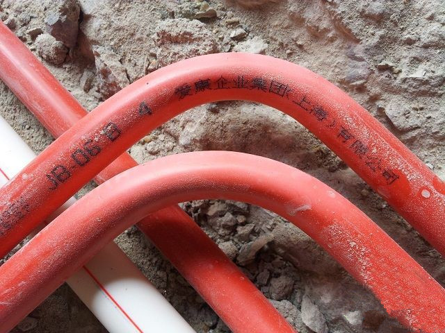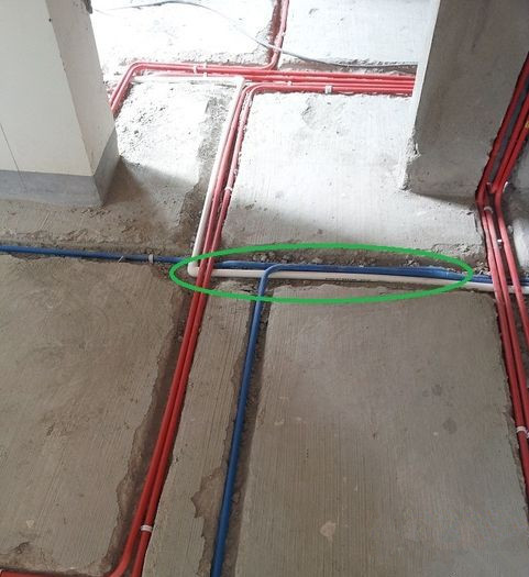 这就是阳台热水管,我问了下师傅和电有部分重叠有没有关系,他说只要试压合格就没有问题;电线转弯的地方要装弹簧弯。