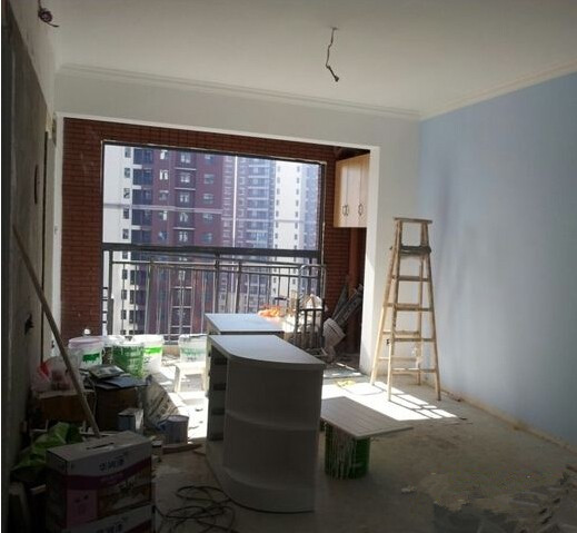 齐家网> 齐家装修论坛> 装修> 乳胶漆半完工!上照片!客厅的淡蓝色:后面那面墙是要留到最后贴...