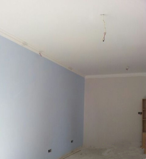 乳胶漆半完工!上照片!客厅的淡蓝色:后面那面墙是要留到最后贴壁纸的。