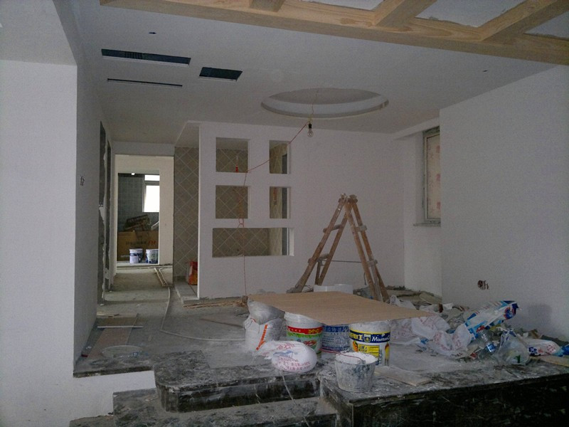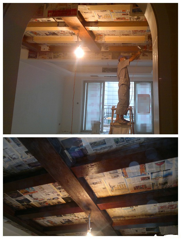 齐家网> 齐家装修论坛> 装修> 依次是客厅、儿童房的乳胶漆第一遍、师傅在给假梁喷漆了。