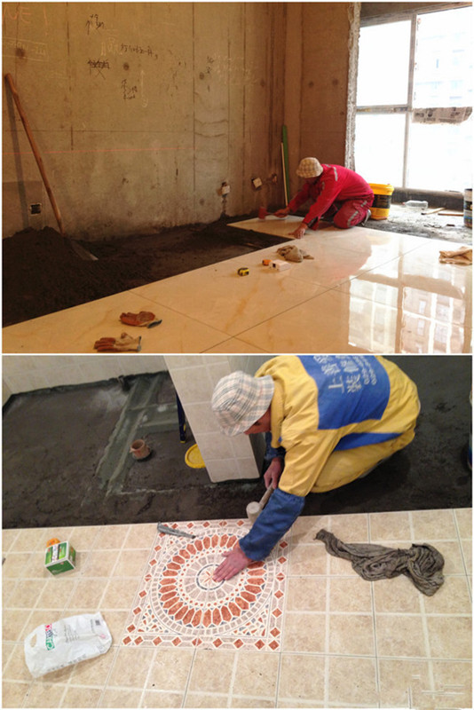 最后,上图张工默默干活的身影,感谢张工替我操心了很多我自己都没考虑到的地方,尽心尽力为我家铺上每一片砖。他常说“你们业主装修房子也不容易,我要是不尽心做,觉得心里过不去。”