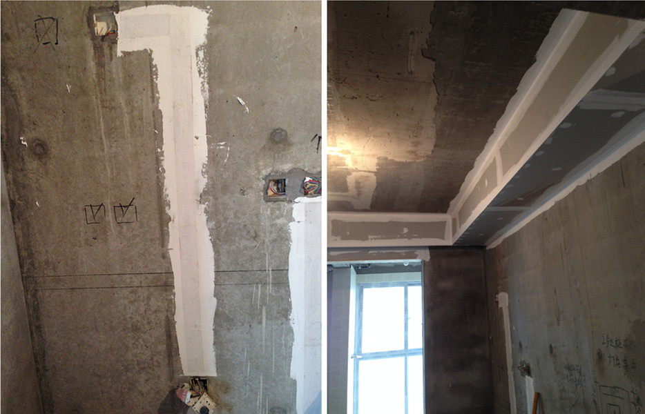 贴牛皮纸、布条防止开裂,这道工序只能防止细裂缝,但不能避免墙体或者吊顶以后结构上的开裂。贴布的地方有:石膏吊顶所有接缝处、暗埋线槽表面、混凝土墙与砖墙接缝处、墙面本身有裂纹处等。小何的施工方法是:先贴一层布、再贴一层纸,最后用腻子抹平。