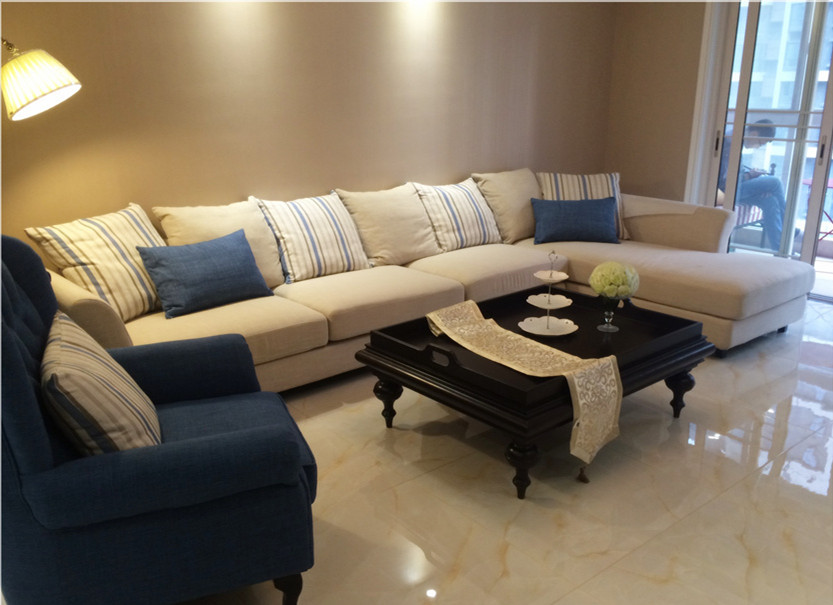 主卧床、客厅沙发、餐桌、厨房,美美的橱柜。