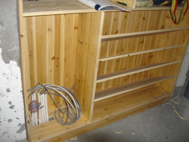 鞋柜。因为设计师设计的是三扇门,汪师傅说他做好了才发现,四扇...