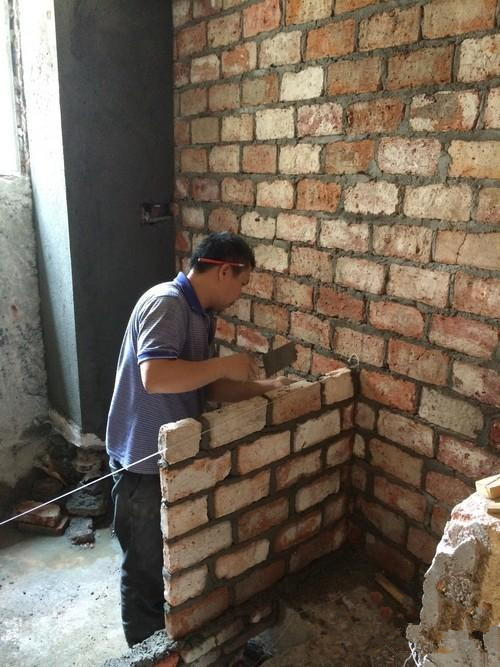 齐家网> 齐家装修论坛> 装修> 师傅正在砌干湿分区的客卫里面的门墙。