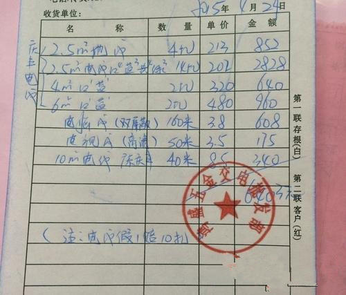 如上所述,各类电位定完之后,又反复了修改了几个,电工已经不耐烦了!最后,根据电位计算出来的电线量自然也是很大的,而且买完电线发现,这一项又超支啦!下面晒单。