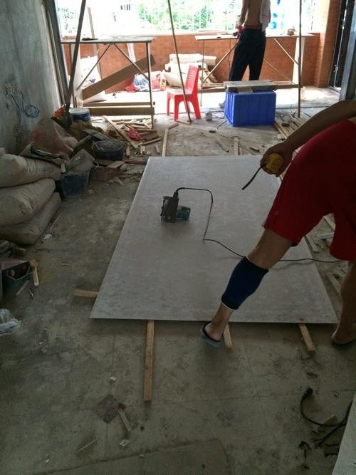 上周三一早探查工地时,看到师傅们正在吊客厅的天花了。我真是想说,这俩师傅真是十项全能啊,从打拆到砌墙、到贴砖,现在吊顶,都是他俩在做哦!不过也好,这俩师傅干活还是蛮细致认真的。