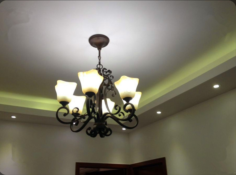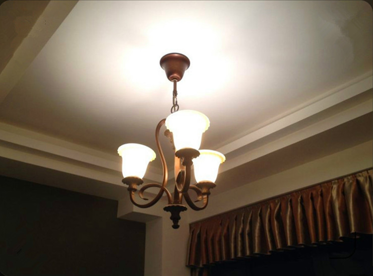 关于灯带这块,我在装修的时候觉得属于不常用的地方,所以我买的普通牌子的,价格是5块一米。白天的时候开灯不觉得,但是晚上打开的时候,光源很粗糙,印在吊顶上的效果特别差,结果就真成了不常用的灯。这里,建议选择辅材的时候还是不能过度的解决成本,合适是最重要的。下面直接看效果吧。 欧式的灯,看起来还不错!