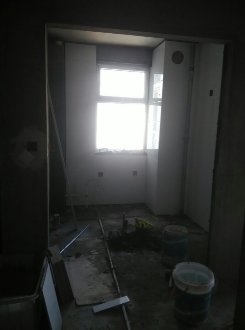 贴砖,水电找的自己同学,不怎么好,线交叉着,厕所水管在地下,多用了一方多沙子,地面比别人的高两公分