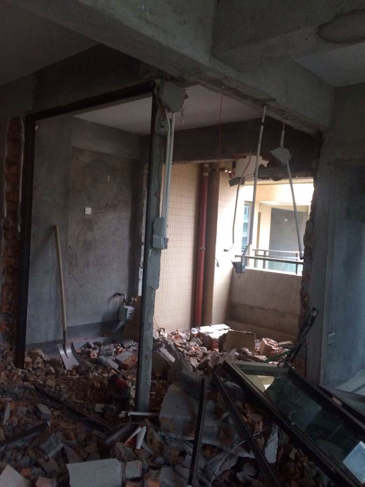 2015年底开始装修拆墙了,包给小区内部卖沙土的人,图个以后...