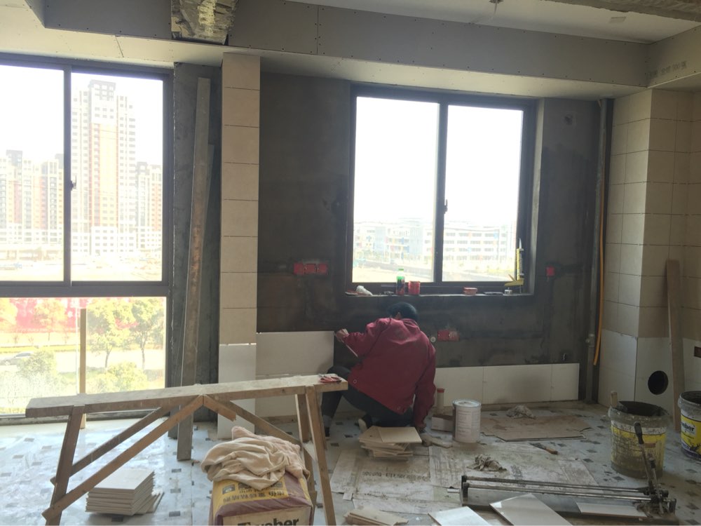 20160320厨房开始贴砖了,木工吊顶也接近尾声,空调风口重新开了。20160321木工要开始做门洞了,今天要约做门的过去。又要开始考虑做美缝了。