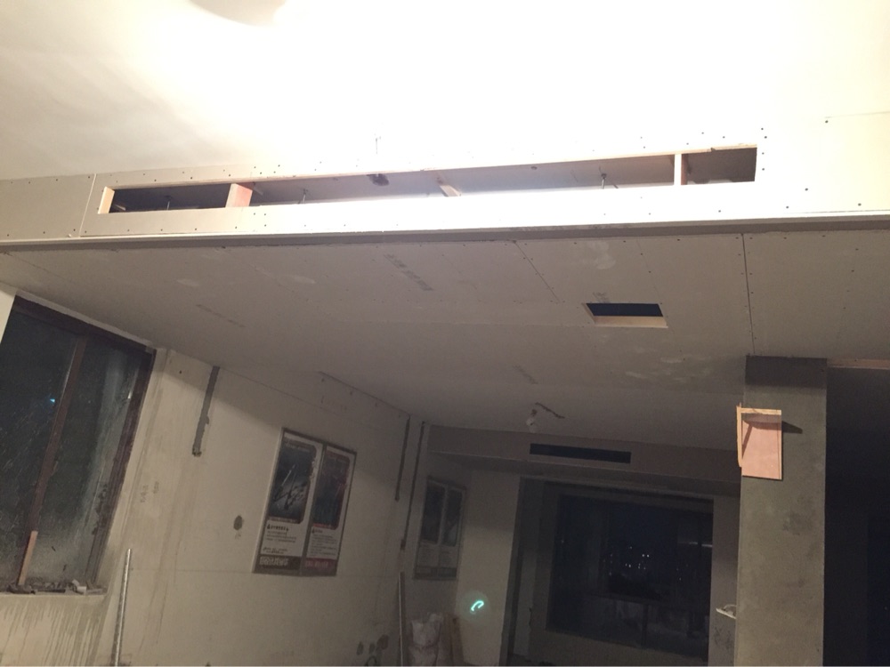20160320厨房开始贴砖了,木工吊顶也接近尾声,空调风口...