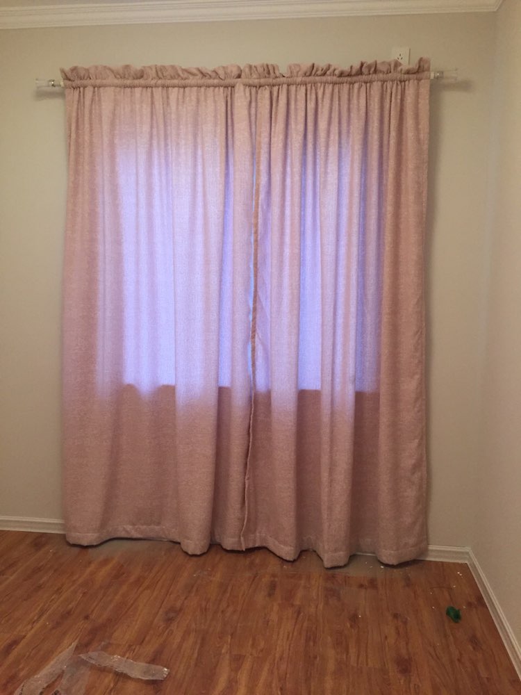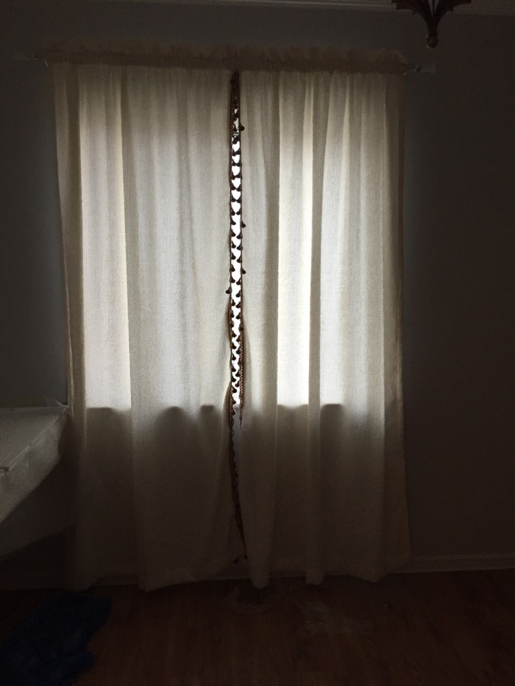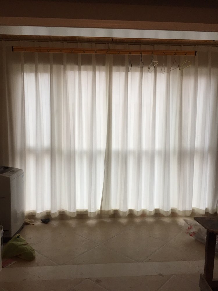 3月21号,窗帘挂上去了。顺序分别是阳台纱帘,客厅窗帘,主卧...