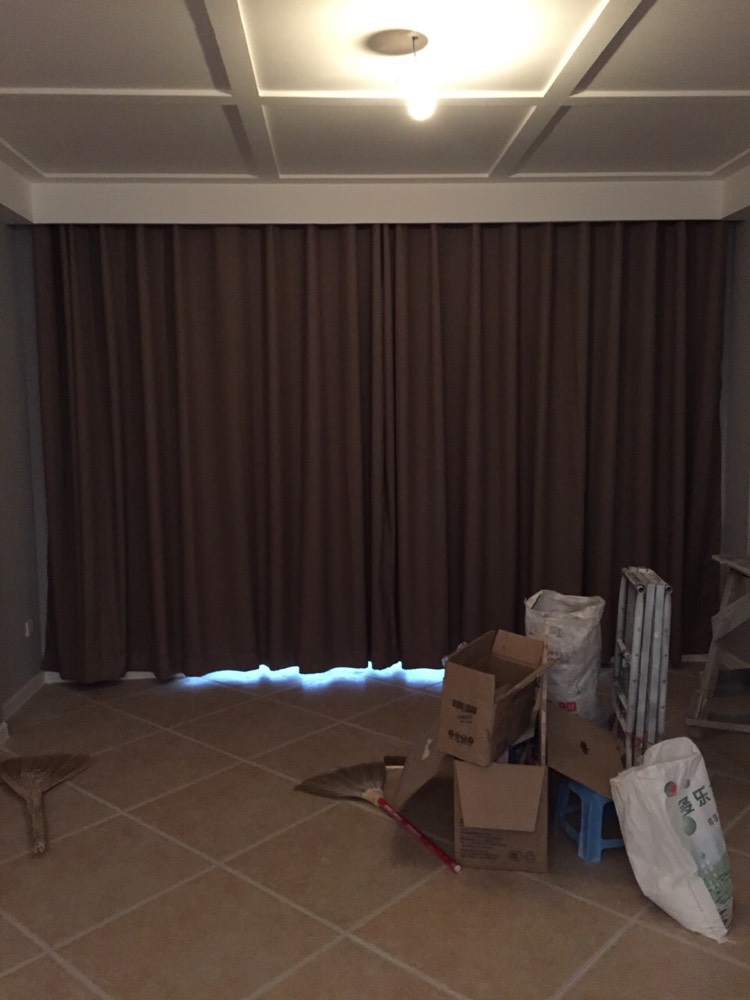 3月21号,窗帘挂上去了。顺序分别是阳台纱帘,客厅窗帘,主卧窗帘,两个次卧窗帘,还有两个卫生间的。选的都是素的
