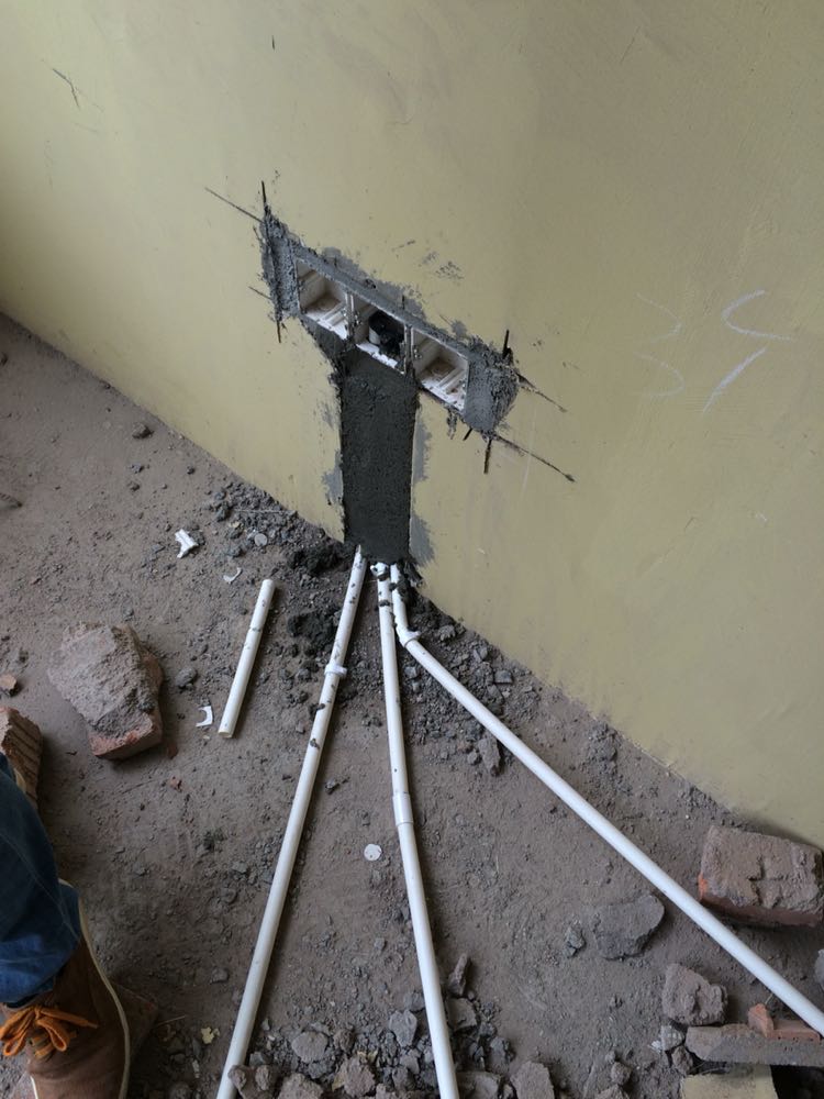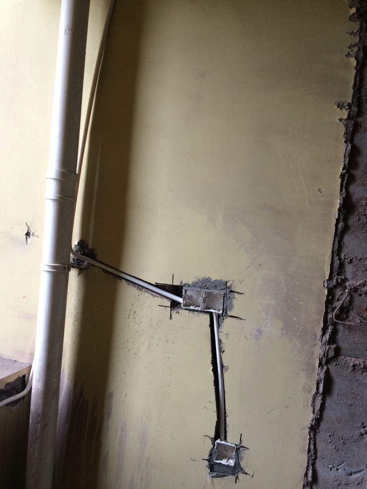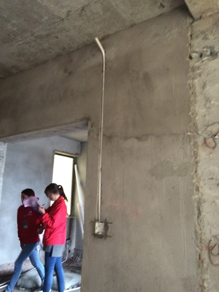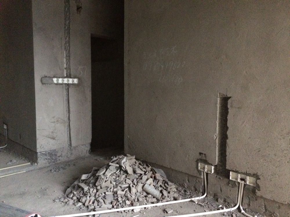 2016.3.14动工的,简单的动工仪式其实就是拿一个锤子敲了两下。第二天开始正式干活,水电师傅画好管线位置,开始打线槽,安装水管和线管