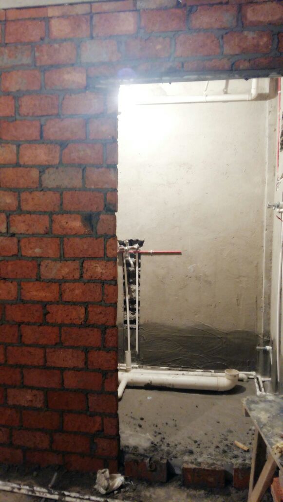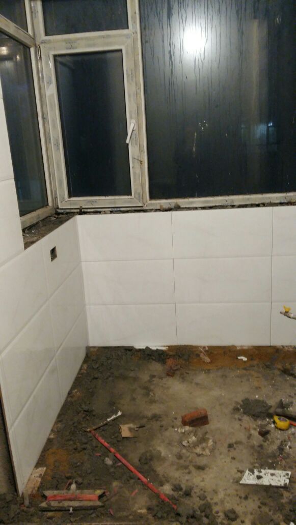 厕所的墙已经砌完了,卫生间的瓷砖也粘了一半了,现在想想厨房瓷砖的颜色是不是选的淡了一些?