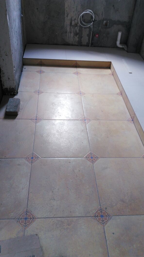 原来想找个靠谱的工人自己就可以不管了,偶尔去看看就行,现在基本天天到房子里报道,昨天爸爸过来了,看了房子当时正在贴砖,厨房考虑到最后还是准备不用整体橱柜,正好找的瓦工自己会用瓷砖扣柜体,真是太合我意了!厨房地砖以贴好了就等着扣柜体了,很多同学估计灰奇怪怎么先铺地,我也奇怪,这样不是再铺墙会很脏,今天去见识了胶泥贴砖真的一点都不脏干干净净的一点溢出来的灰都没有,忘记拍效果了,明天再去拍