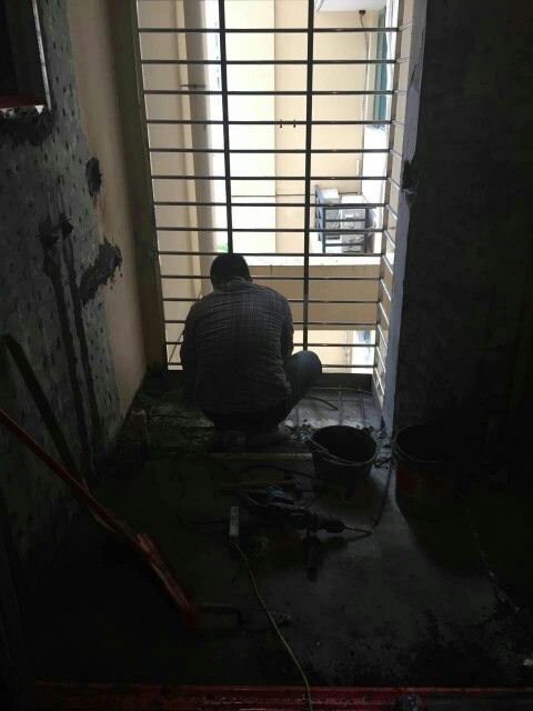 厨房边上的小阳台拓出去近一平,变得比较大了,这边没阳光,准备放洗衣机,洗衣槽洗衣机拖把槽,这么点地方作用还是很大的。