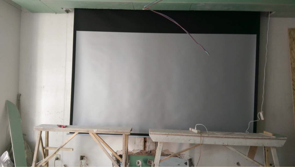 1.为了省钱,我们让快递发的物流。自己开车跑到物流站去取的,包装盒子太高 足足有2.78,侧着放不下,只好从天窗口伸进到后排座。因为风很大,导致盒子老移动,他一个人就这么抱着这个 空扶了一路,?才有了家里的投影仪。2.第二张是侧面看留的距离。3.第三张实际看着有点斜,但其实没有,我家的投影幕布 他说是买的质量最好的一款。厚面的投影为了美观 采用了这种升降机形式的,相当于在吊顶上,板材之间留一个空位 塞这个,当时尺寸没有量对,导致升降机的底部塞不进去,木工师傅 又改了2个多小时 拆掉重新做,他在一旁也没有闲着 给师傅递各种东西