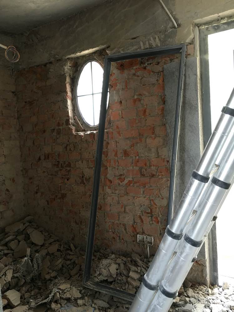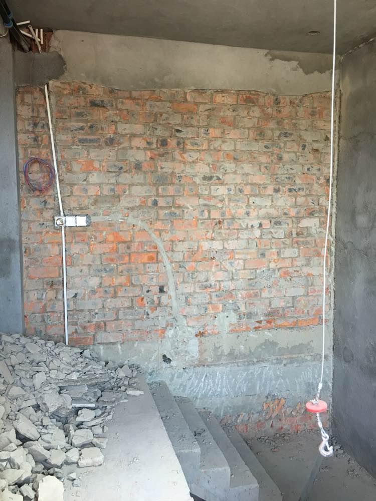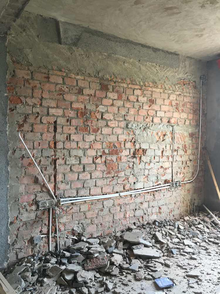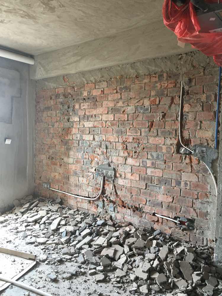 今天自己把劈开砖吊上楼,搬运师傅打三楼墙皮。