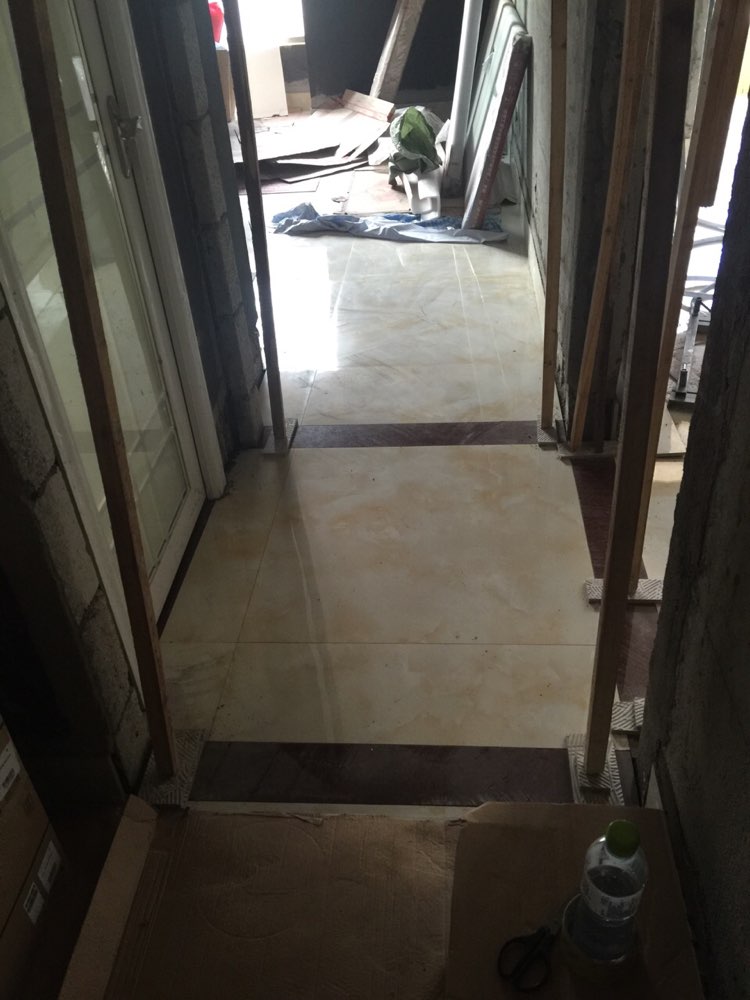 瓷砖终于快要贴好了,次卧先弄了地面保护,门槛石一回来就让师傅...