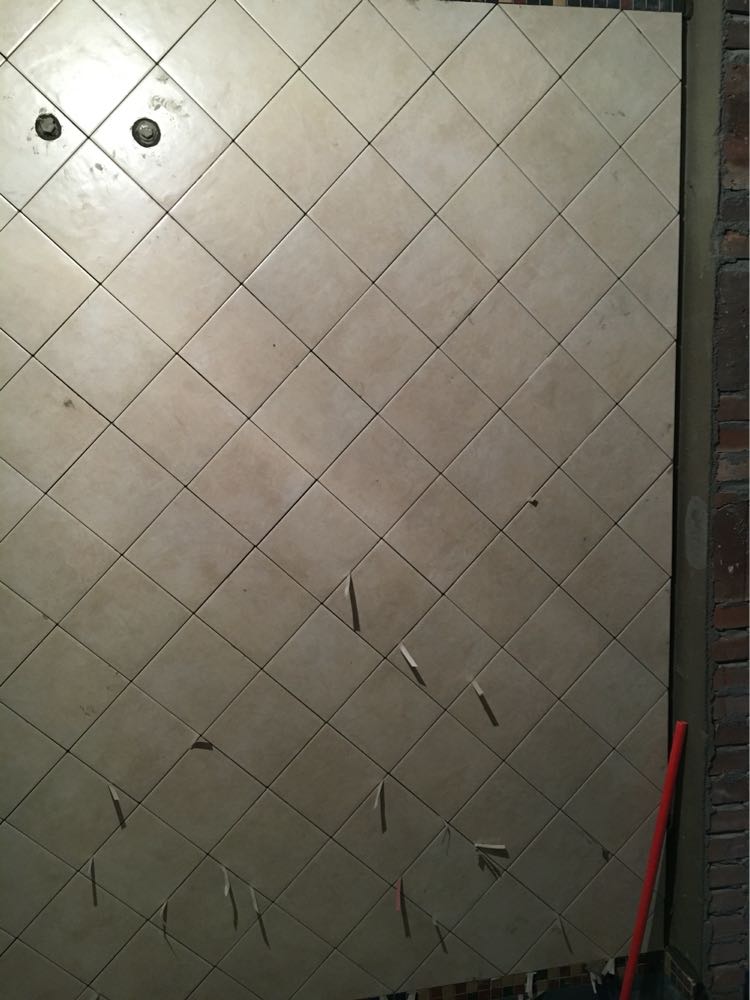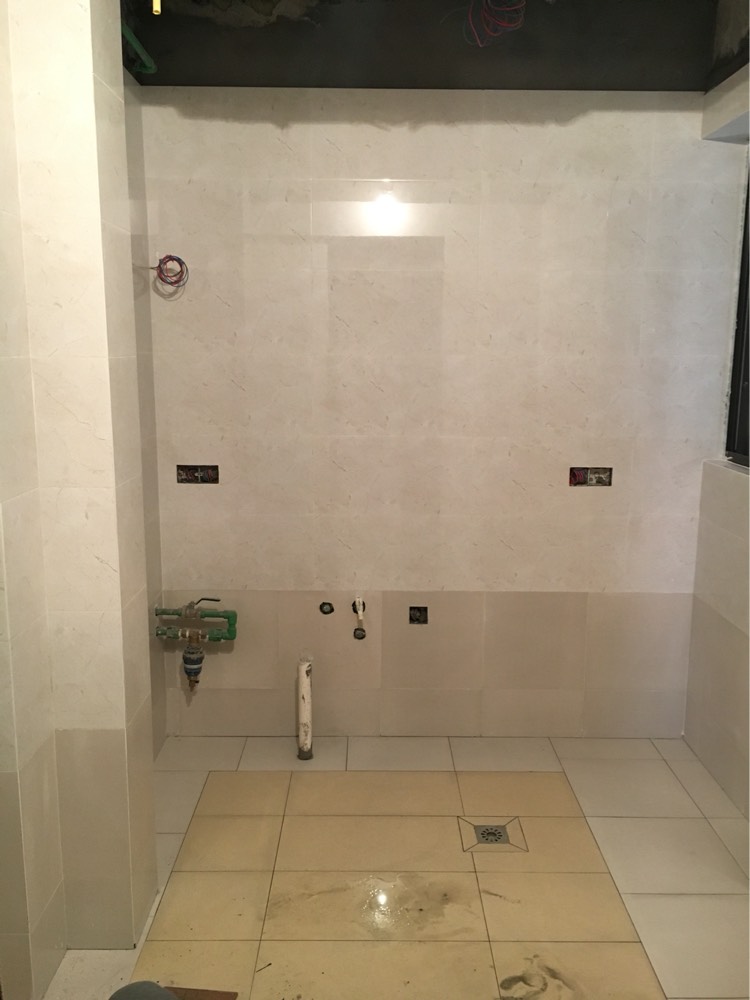 2016-5-20 贴砖第四天。休闲阳台地砖完成,效果不错,对缝还是很重要滴;厨房地砖完成,墙面勾缝完成;生活阳台墙面勾缝完成;卫生间墙面砖完成一面。卫生间墙砖勾缝颜色纠结中。今天520,买个戒指去!