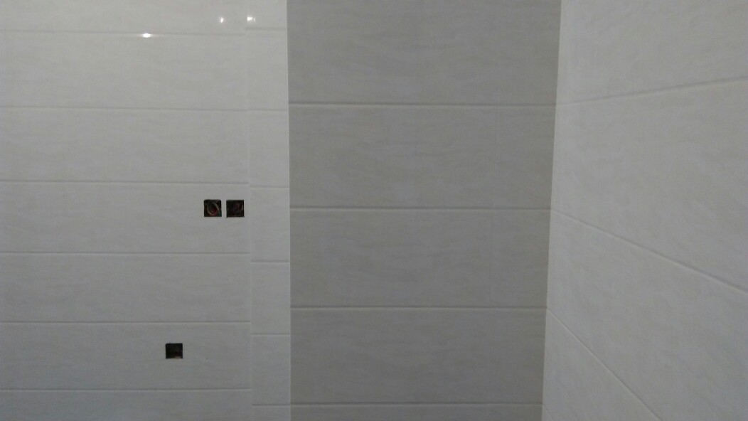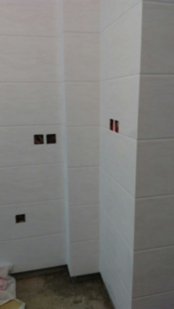 瓦工终于开工了,师傅看上去人不错,干活挺认真!看到贴厨房墙砖没用锤子敲,问了师傅说墙砖不用锤子,地砖要用!我也不懂!贴两张照片大家看看!