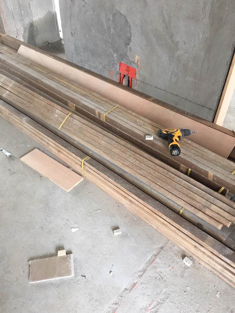 过了周末去看吊顶都吊了差不多了,瓷砖已经来了,我爱的木纹砖,好重