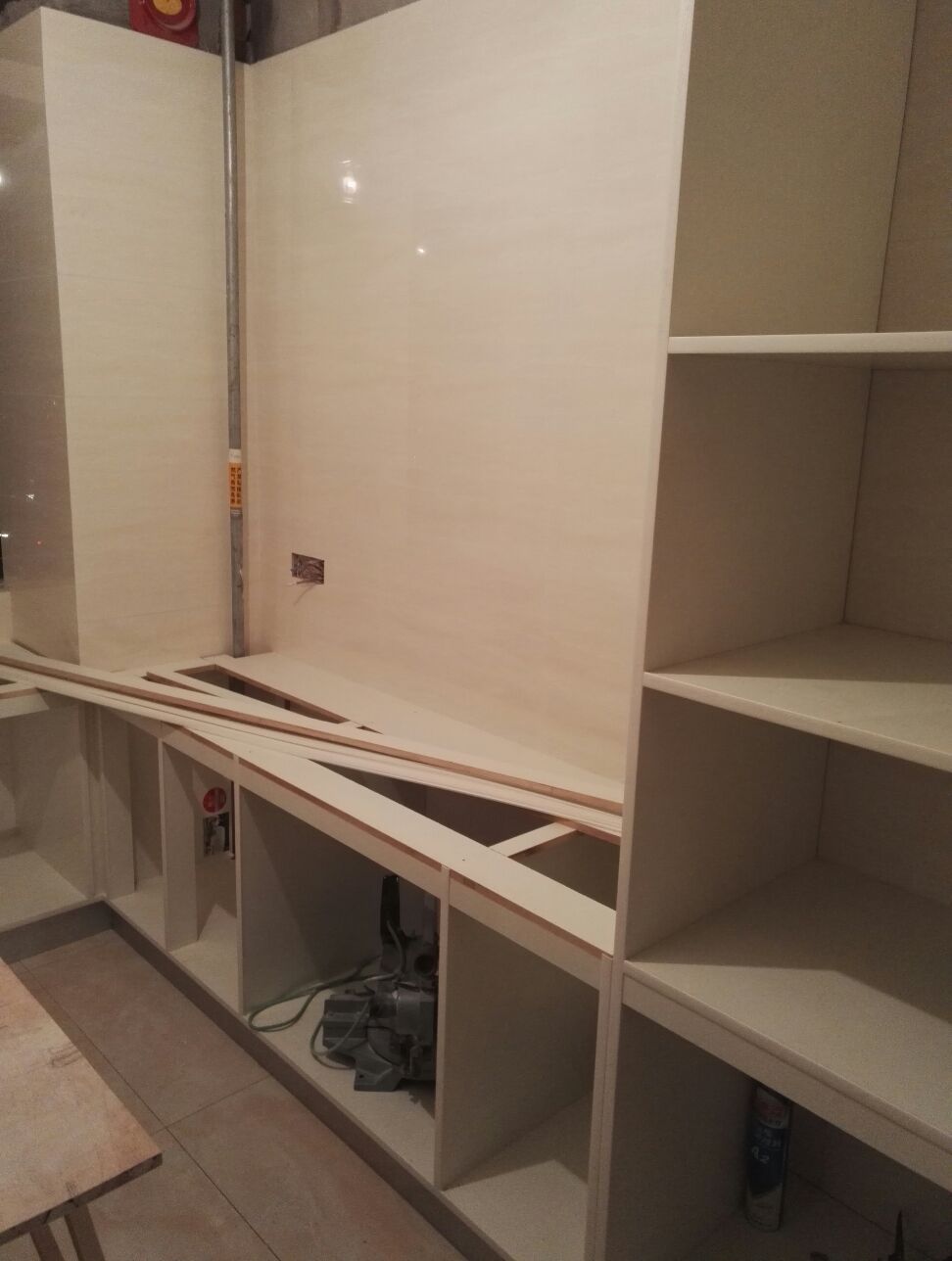 2016.6.5 木工工程基本结束,不过还得返工把背景墙加一点,橱柜做成U型;