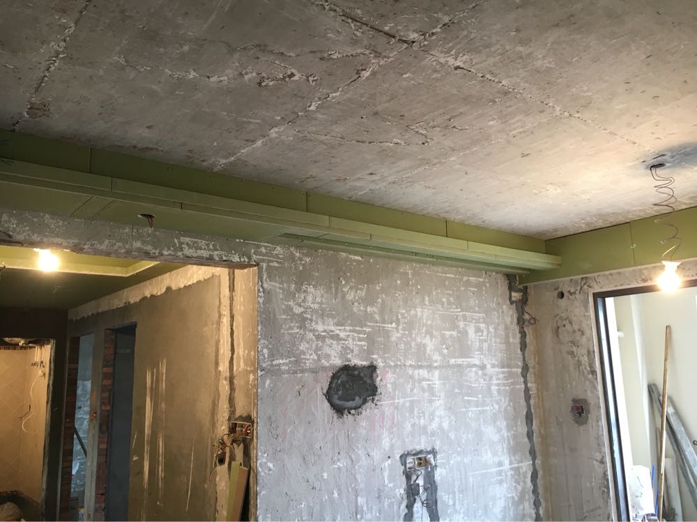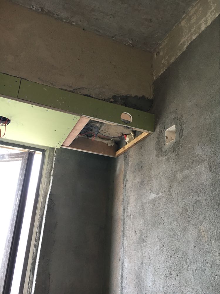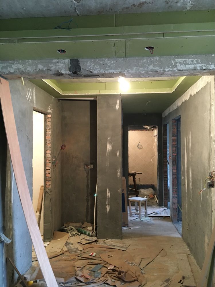 2016-6-8 吊顶第三天,热水器安装完成,厨卫吊顶完工。空调师傅没来,预留孔洞后封板。每道工序完都是一片狼藉,明日打扫。
