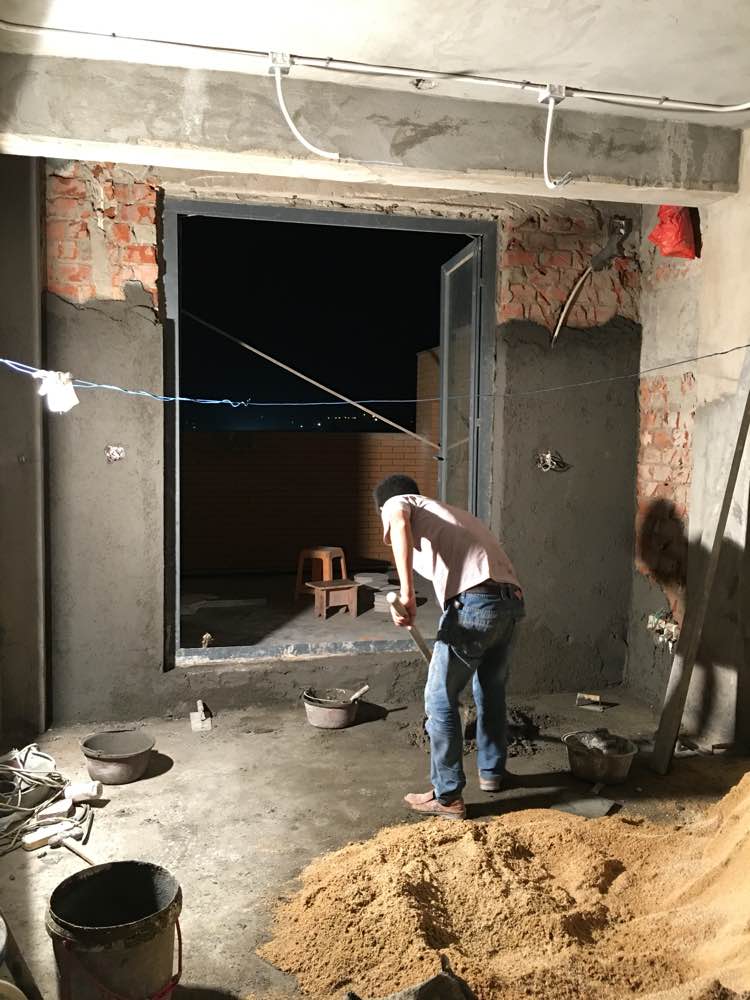 今天开始铺阳台地砖,开始挺担心的,结果算是满意。另外粉房间的土底。