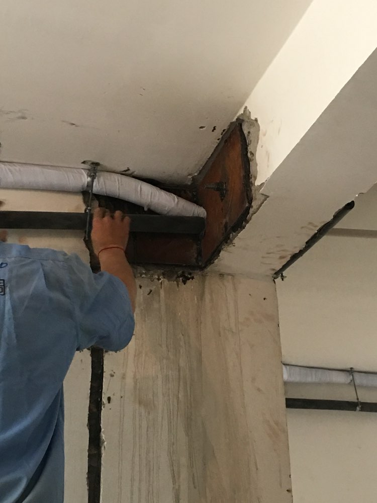 2016.5.29 安装中央空调,物业公司管理严格又负责。安装师傅按照日常的程序操作,打断了加强筋。于是又找专门的加固公司进行钢板加固。结果,加固时又把主卧的电线打断了。唉~好事多磨呀。