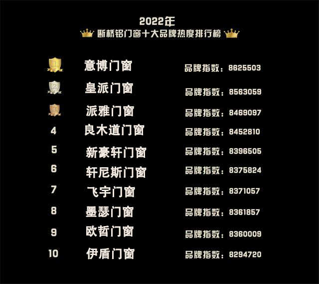 以上就是2022年断桥铝门窗十大品牌热度排名,如果你最近在选购或者想要加盟门窗品牌,你可以找这几个品牌比较一下。
