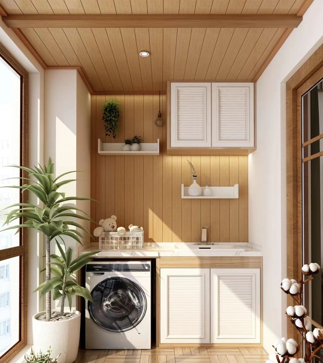 原木色想要极简风格的搭配,原木搭配白色必然不会出错。不用太多复杂的设计,简单更耐看。