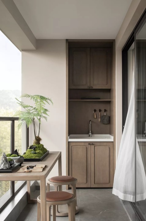 蓝色-灰蓝色令人感受到自由平静的蓝色,特别适合用在阳台这区域,即便是冷色调也完全不会影响蓝色的美丽。