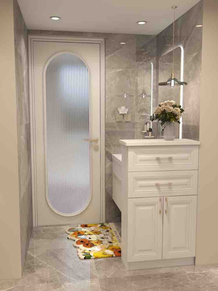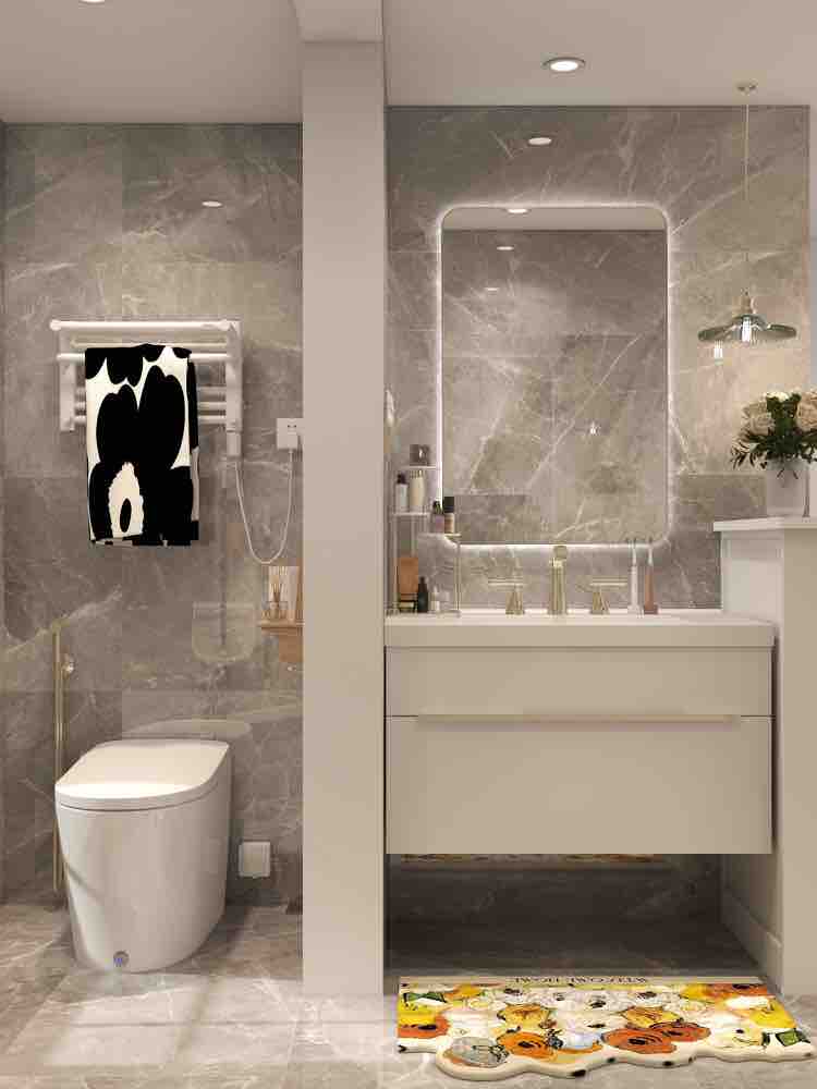 奶茶色轻奢风浴室,干湿二分离的卫浴 一整个奶油轻奢风的浴室
