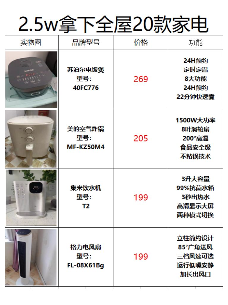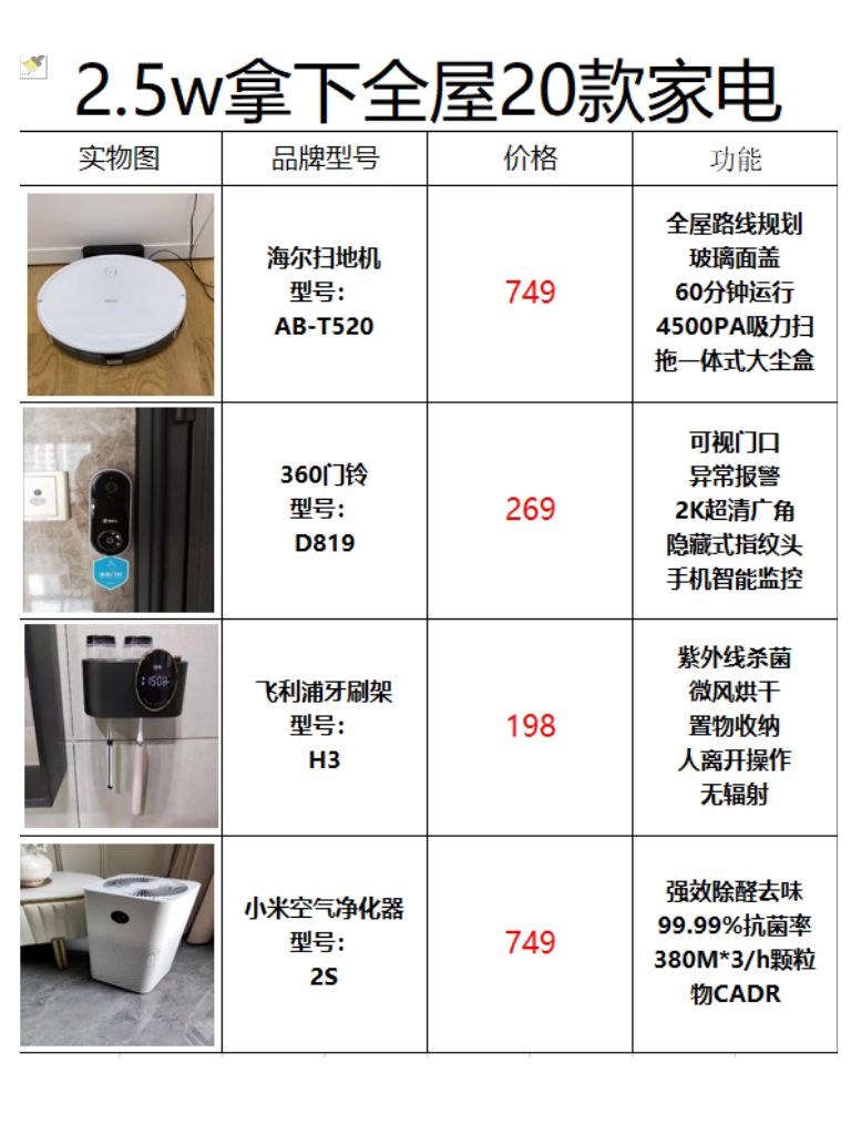 新家入住,需要购买的家电实在是太多了😭预算不够怎么办,那当然是做好取舍,把钱花在刀刃上‼️今天给集美们整理了全屋20款性价比超高的家电,只需2.5W🤔赶紧收藏起来✅