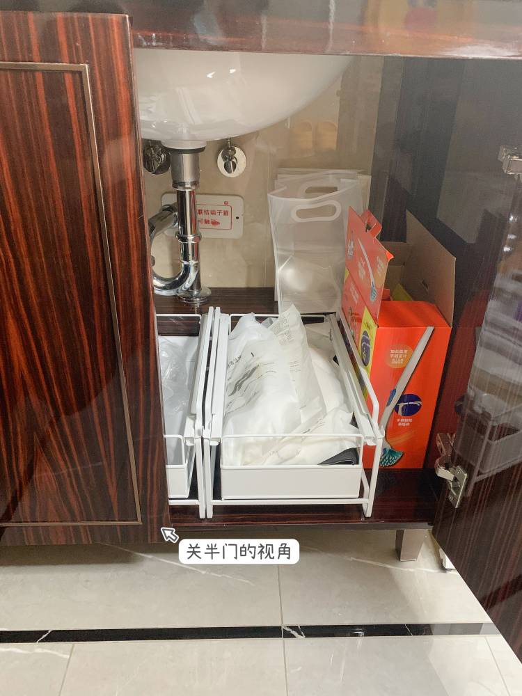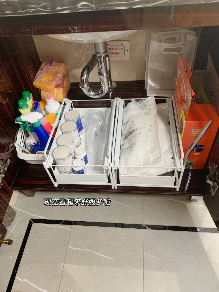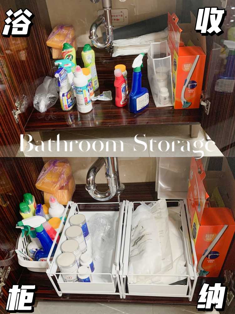 颜值很高,质感也不错,是可推拉的,放在浴室柜里面尺寸也刚刚好,一丝空间也不会浪费,很绝👍姐妹们如果也有这样的收纳问题,赶紧安排起来~