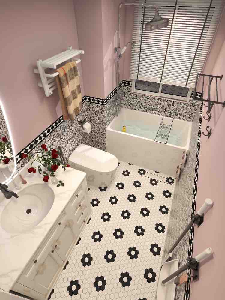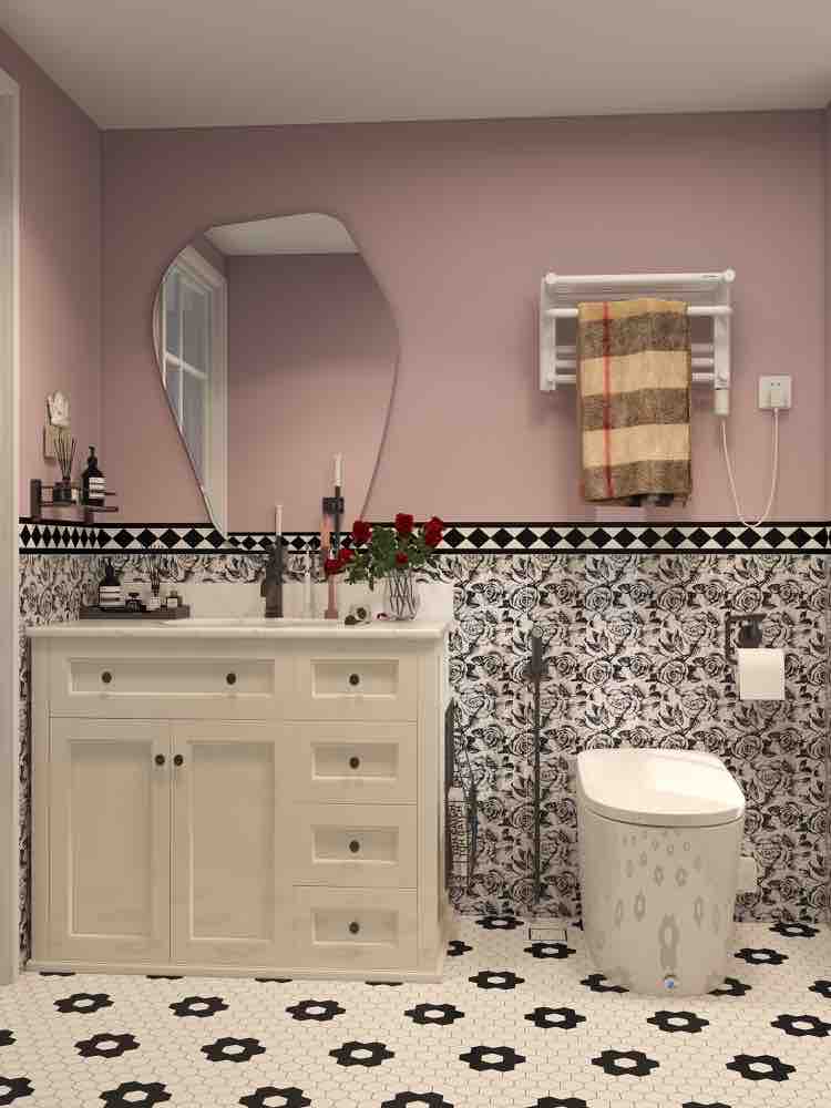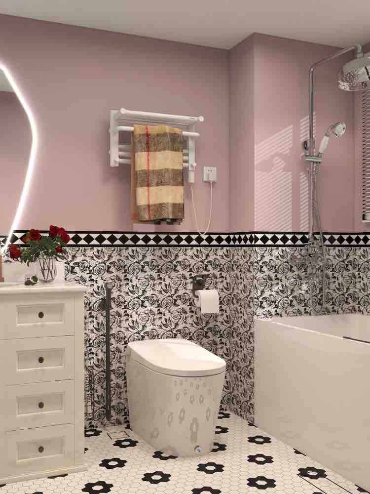 复古风浴室,智能马桶,全家用的舒畅~ 智能马桶其实也没有买